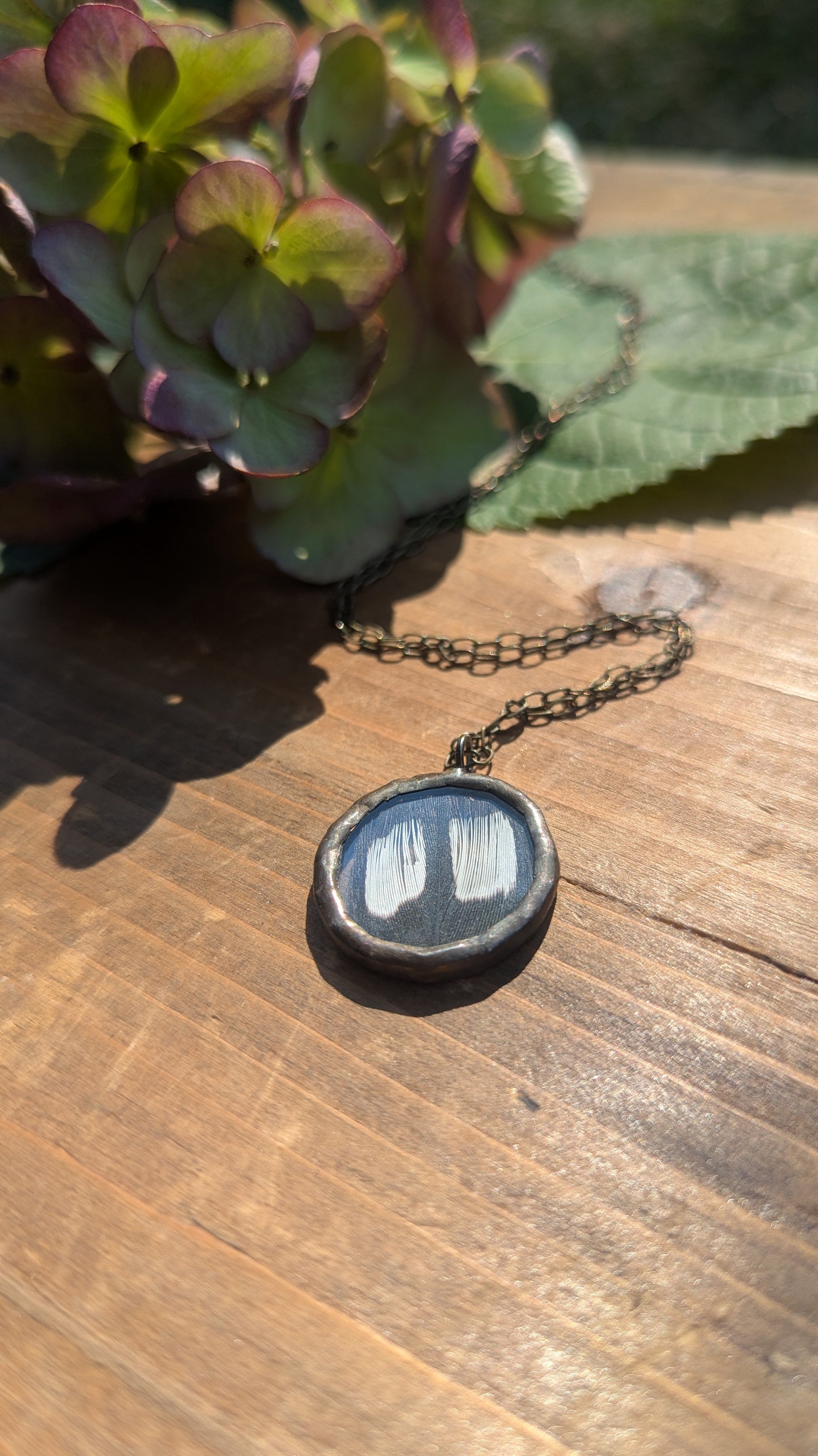 Real pressed butterfly wing inside of necklace (humanely sourced)